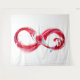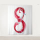 Infinity symbole of continuous stream of red pouring into glass glass glass on white background.