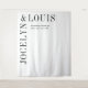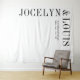 Un décor mariage moderne avec un design minimaliste noir et blanc avec vos noms dans une grande police le long du côté gauche et du dessus. Cette conception est assez simple pour un mariage officiel tout en faisant une déclaration audacieuse.