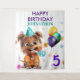 Cute Terrier Chiot en Casquette de fête avec Horn, fête un anniversaire.