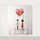 Illustration minimaliste et réconfortante d'un couple tenant la main, relié par un ballon rouge en forme de coeur qui flotte au-dessus d'eux. Le design simple, la texture aquarelle et les éclaboussures douces de couleur sur un arrière - plan blanc donnent une impression douce et rêveuse à l'oeuvre, symbolisant l'amour et la convivialité d'une manière pure et innocente.