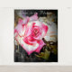 Le design présente l'image de fond d'une rose rose en pleine floraison. Le texte personnalisable dit, "L'amour est en fleur" comme titre, le mot "pour" suivi des noms de couple. Conçu pour coordonner avec la "Love is in Bloom Mariage Suite".