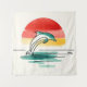 Cette pièce minimaliste présente une silhouette de dauphin stylisée qui saute sur un décor abstrait qui évoque un coucher de soleil serein sur l'océan. L'oeuvre utilise des lignes audacieuses et une palette chaleureuse de rouge, d'orange et de jaune, contrastant avec les tons cool de bleu et de vert pour représenter la mer. Cette élégance simple et moderne capte l’essence de la beauté de la nature à travers une lentille contemporaine. Une représentation sereine mais vibrante qui complèterait n'importe quel décor moderne, surtout pour ceux qui sont attirés par les thèmes nautiques et apprécient la grâce de la vie marine juxtaposée à la tranquillité des couleurs du coucher de soleil.