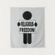 Ce dessin montre un manifestant tenant un panneau de liberté religieuse.
