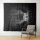 Faites votre monogramme le joyau de la couronne dans ce portrait monochrome d'un lion majestueux encadré par des fougères de jungle sur un arrière - plan noir. Orientation verticale. ♡ Idyllfire