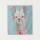 Adoré Llama II par Victoria Borges. Il présente un lama de couleur blanche avec des pompons décoratifs et des ornements de goût.
