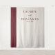 This elegant wedding backdrop features a sophisticated and timeless design, perfect for creating an intimate and romantic atmosphere. The layout is simple yet refined, with a bold vertical stripe in deep burgundy complementing the soft cream background. The typography is classic and understated, adding to the overall sense of grace and formality. Ideal for a chic indoor ceremony or reception, this backdrop exudes warmth and sophistication, making it a beautiful focal point for your special day.