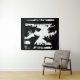 Cette tapisserie murale est noire et blanche avec le Petit chaperon rouge assis sous les arbres qui parle au loup cueillant des fleurs dans la forêt.