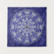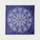 Une belle tapisserie de mandala de déesse argentée avec des vignes, des feuilles, des spirales et des lunes triples autour d'un symbole de triskele celtique au centre sur un arrière - plan bleu céleste.