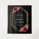 Elégant chic rouge bordeaux et noir mariage de bienvenue tapisserie avec de belles fleurs et feuilles verts. Une fusion enchanteresse d'élégance et de charme gothique. Ces belles invitations sont dans des tons riches noir et rouge. La calligraphie est élégante et chic et se customise facilement. Invitations de mariage à fleurs romantiques et modernes avec des couleurs classiques qui ne sortent jamais du style.