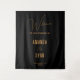Simple Elegant Black Welcome Script Mariage Bannière de fond. Une bannière noire au design épuré et élégant, avec un message "Welcome" scénarisé. Design simple avec script et polices à la mode. Personnalisez tout le texte sur la bannière, y compris les noms de la mariée et du marié et la date du mariage.