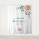 Bannière de mariage élégante, classique, style moderne, tapisserie. Décoré de roses peintes à l'aquarelle rose gold, fleurs et verdure d'eucalyptus. Avec le texte : Mariage écrit avec un style d'écriture manuscrite moderne de couleur noire. Personnalisez et ajoutez le nom de la mariée et une date.