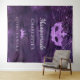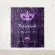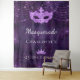 Pour une Quinceañera girly et glamour, fête du 15e anniversaire. Un motif de dentelle fleurie violet profond comme arrière - plan. Décoré avec de la poussière de parties scintillant, un masque masqué et une tiare. Personnalisez et ajoutez un nom. Peut être utilisé comme bannière de bienvenue, décoration murale de fête et comme fond de cabine photo.