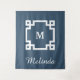 Design Monogramme avec décoration de bordure clé grecque sur arrière - plan bleu