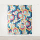 Un motif géométrique d'été dynamique, composé d'hexagone, de carrés, de cubes, de lignes triangles et de bandes de formes et de traits d'or. Cette illustration motif graphique abstraite, symétrique, créative, mode tendance design décoratif est parfait pour la décoration maison et l'usure quotidienne. Rempli de moutarde jaune, mangue glacée, corail vivant, crêpe aux bleuets, verre de carnaval, bleu aqua, bleu foncé et blanc couleurs vives heureux. Un design élégant, tendance, gai, joyeux, joyeux, image d'art original.