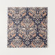 Motif symétrique sans couture dans le style Damask. Des lièvres qui sautent, un ornement de plante dans les tons beiges sur un arrière - plan bleu foncé.