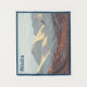 Un aigle à tête blanche (Haliaeetus leucocephalus) vole devant la chaîne Chugach enneigée près d'Anchorage, AK. Lecture de texte personnalisable, "Alaska" apparaît également.