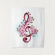 Pink treble clef with delicate, detailed pink Japanese cherry blossoms against white background painted over with light blue paint Blooming pink sakura.