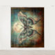 Un grand papillon de nuit avec des motifs complexes sur ses ailes est affiché en évidence sur un fond de pleine lune. Les ailes du papillon de nuit sont principalement turquoises et grises avec des touches de rose, tandis que la lune est jaune pâle. L'arrière - plan est orné d'un motif tourbillonnant dans des tons verts et bleus muets, qui rappelle le ciel nocturne. Le papillon de nuit lui-même a de multiples yeux sur ses ailes, créant une image mystique et captivante.