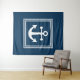Design à thème nautique avec décoration d'ancre en carrés rayés sur arrière - plan bleu