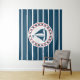 Design nautique avec décoration de voilier en forme ronde sur bleu et blanc rayé arrière - plan