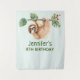 Tapisserie avec un paresseux adorable suspendu à l'envers à une branche d'arbre. La branche d'arbre est décorée de feuilles tropicales et de baies.
