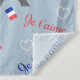 Seamless Paris text illustration with Eiffel Tower, tricolor heart shapes and French flag decoration on blue background for Valentine's Day