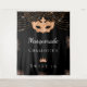 Pour une fête de 16 ans, 16e anniversaire, douce et glamour. Un arrière - plan noir élégant. Décoré avec de la poussière de parties scintillant en faux or, un masque masqué et une tiare. Personnalisez et ajoutez un nom. Peut être utilisé comme bannière de bienvenue, décoration murale de fête et comme fond de cabine photo.