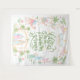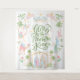 This Christmas photo backdrop design features a nativity frame of baby Jesus sleeping in a manger with Mary and Joseph in the center surrounded by a the wise men and two angels. In the center is hand lettered text that says "Glory to the Newborn King."