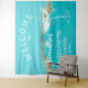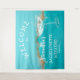 bannière d'accueil personnalisée bannière avec une tapisserie dorée et turquoise dans un gemme bleu turquoise et or brillant gemme ou agate pierre de luxe, avec un verre à cocktail est parfait comme toile de fond photo de fête de bachelorette. Célébrez votre douche nuptiale dans le style avec le thème parfait cocktail de soirée en rose gras, le thème parfait pour la luxueuse bimbo vintage les années 70 mariée et ses demoiselles d'honneur.
