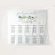 Quelque chose d'unique pour votre mariage avec ce plan de table en tissu/tapisserie. Le design comporte "trouvez votre siège" en police de style calligraphie moderne noire souligné d'une branche de feuilles vertes à l'aquarelle. En dessous, vos noms, date de mariage et détails de placement sont en police serif noire. Le modèle permet 10 tables.