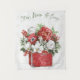 Saison V de Rustic| Belle végétation de vacances et fleurs rouges et blanches sont réunies dans un conteneur rouge. La phrase "Restez chaleureux et confortable" et un arrière - plan fleuri complètent l'oeuvre. | 57373HR
