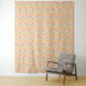 Retro geometric pattern with teal, orange, and black star-shaped diamonds on a peach background. The design conveys a playful, vintage feel.