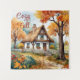Cosy chalet de campagne entouré de jardins et d'arbres d'automne colorés.