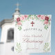 Tenture Signe de bienvenue pour baptême avec des roses de