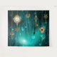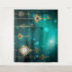 Or, clés antiques avec engrenages et cadrans accrochés sur chaînes dorées sur arrière - plan vert lumineux.