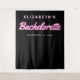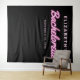 Tapisserie de photomaton de fête de bachelorette cool avec "Bachelorette" écrit en écriture rose chaud avec un effet de lumières néon sur fond noir. Vous pouvez personnaliser avec son nom et la date de la fête. Un espace vierge en bas fournit un espace pour que les invités prennent des photos devant le décor.