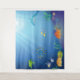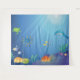 Des créatures marines sous la mer en toile de fond pour la fête, l'événement ou le théâtre. L'image colorée montre une scène sous-marine avec une tortue de mer, un dauphin, une pieuvre, plusieurs poissons et coraux, avec la lumière filtrant d'en haut.