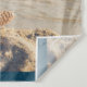 Tapisserie baby shower avec photo pittoresque. Une grande étoile de mer dressée sur une plage de sable. Une belle mer bleue avec des vagues de surf blanc en arrière - plan.
