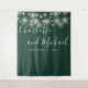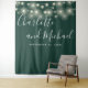 Doté de jolies lampes à cordes et d'un script de typographie chic, ce stand photo mariage vert émeraude peut être personnalisé avec vos noms et date spéciale. Conçu par Thisisnotme©