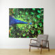 Une superbe tapisserie présente un portrait rapproché d'un paon, serrant ses affaires pour le monde entier. Toute la vitalité de la couleur et l'orgueil dépaysant d'un paon mâle sont les cadeaux de l'imagination et de la grâce de Dieu, mais l'exécution de la peinture originale de style expressionniste capturant ces cadeaux n'est que du coeur, de l'esprit, de l'ordinateur et des mains de l'artiste, Leslie Sigal Javorek.