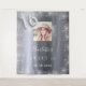 Une tapisserie de bienvenue pour une soirée Sweet 16, 16e anniversaire girly et glamour. Un arrière - plan métallique à l'aspect faux argenté décoré de poussière de parties scintillant. Personnalisez et ajoutez une photo de haute qualité, nom et date. Le numéro 16 est écrit avec une police de style ballon. Peut aussi être utilisé comme fond de cabine photo et décoration murale de fête, décoration.