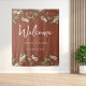 Ce design présente une végétation en terre cuite, un mariage simple décor fleuri avec un élégant décor de calligraphie tendance, un feuillage en feuille feuille botanique, un design minimaliste minimaliste simple, un style jardin fleuri blanc, une signalisation mariage, une réception de mariage, un décor élégant, un style mariage classique classique, une décoration mariage simpliste, une couleur rouille mariage tendance et design.