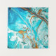 Texture de marbre. Technique orientale. Art contemporain. Peintures acryliques mixtes dorées et turquoise.