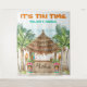 Le fond de photo sur le thème de luau tropical présente un bar Tiki sur la plage peint à l'aquarelle (complet avec un perroquet et des cocktails) encadré par des palmiers, des torches Tiki et des totems avec les légendes "Aloha" et "C'est l'heure Tiki" dans des polices de style insulaire. Le texte peut être personnalisé (par exemple, il est présenté ici avec deux noms comme pour une fête de couple, mais vous pouvez personnaliser le texte et le changer en "Joyeux Anniversaire Marley", ou ce qui convient à votre célébration). Parfait pour un mariage, une fête, un anniversaire, une anniversaire de mariage, etc. Œuvre de KL Stock.