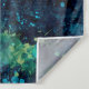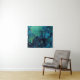 A grungy mixed media design in a turquoise and yellow color palette, on a dark background.