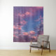 Les teintes roses et violettes profondes des nuages créent un contraste unique et magnifique contre le gris de la montagne et le bleu profond du ciel.