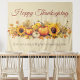 Cette tapisserie de fête de compagnie à l'ancienne présente un dessin vintage de citrouilles oranges, feuilles d'automne et de mignons tournesols d'automne. Décor de Bon thanksgiving nostalgique avec script marron de votre nom d'entreprise et message professionnel personnalisé sur le dos pour clients et amis.