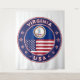Badge de Virginia State avec drapeau de Virginie et drapeau des USA couleurs, forme arrondie. Emblème de Virginie. Sceau de Virginie. Collection USA Etats.