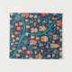 Tenture Vue de l'oiseau. Maisons, forêt, nains, ours, rena