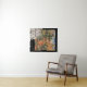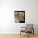 Illustration unique et artistique : chef-d'oeuvre de Renoir's Farmhouse avec loup d'aquarelle avec couronne fleurie sur arrière - plan noir